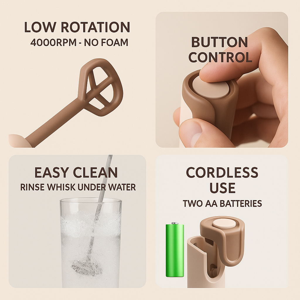 π§ Easy to Clean β Detachable whisk rinses clean under water in seconds